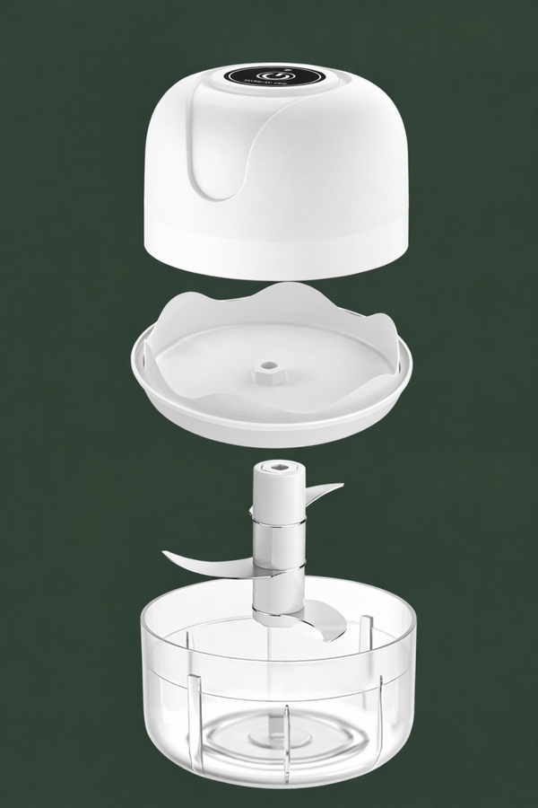 De Elektrische Slicer Dicer is een compacte en krachtige keukenhulp voor het fijn snijden en hakken van ingrediënten in kleine, gelijkmatige stukjes. Ideaal voor het voorbereiden van groenten en fruit, zonder dat de structuur verloren gaat.
